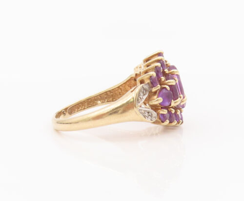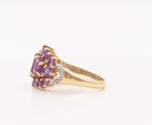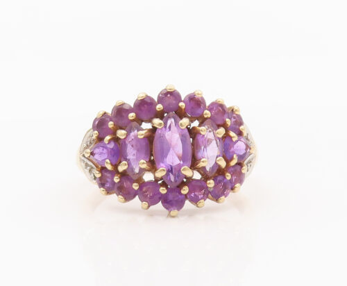 10K GOLD Vintage Ring Oval Round & Drop Cut Amethyst Cluster Sz 7 GR756