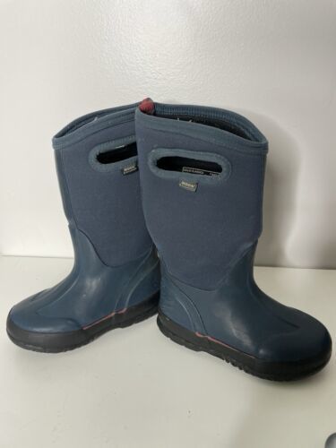 BOGS Solid Classic Kids Size 11 High Handle -30 Snow Winter Rain Boots Navy Blue