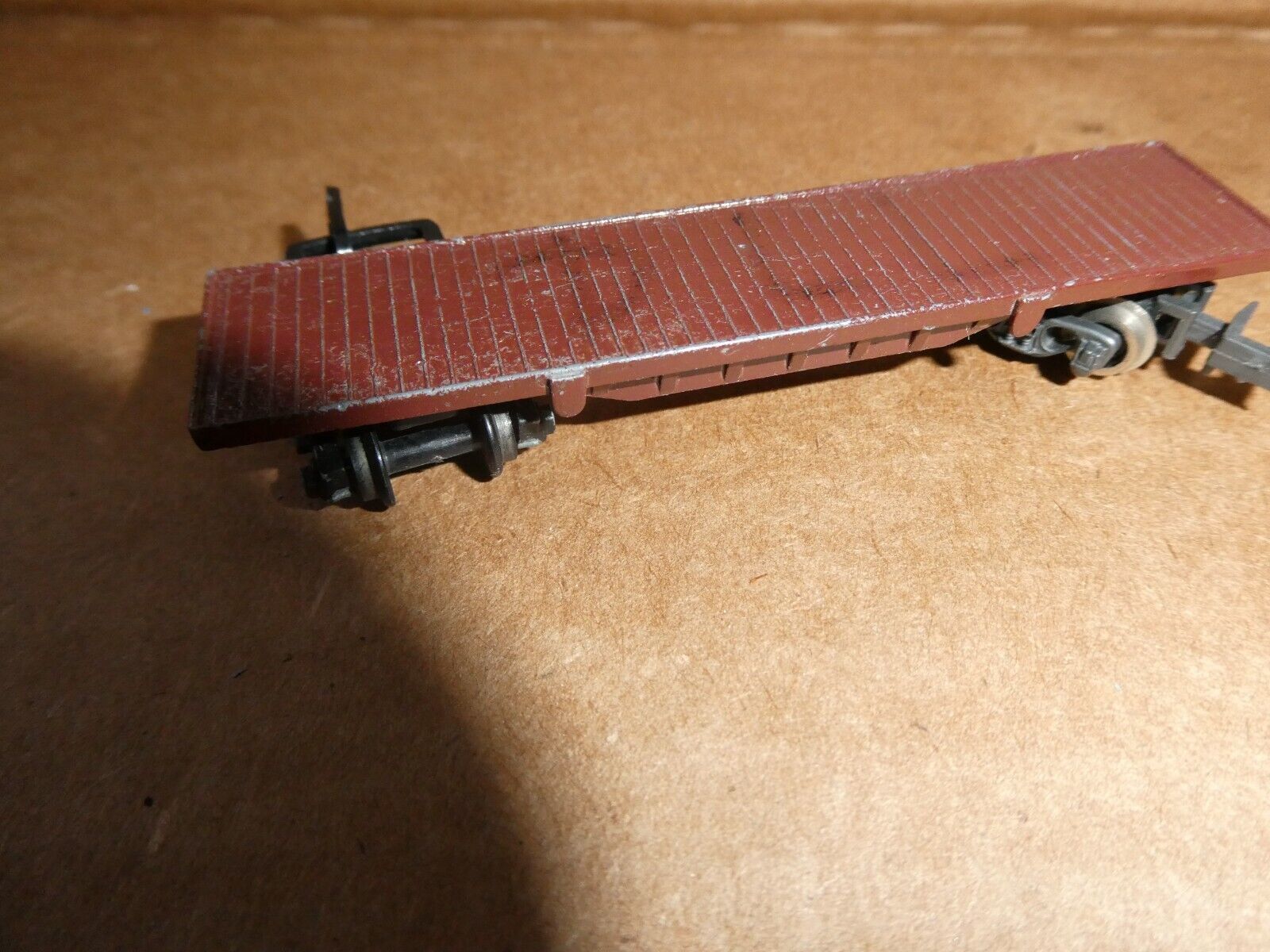 You are bidding on a nice looking, vintage 1960s era, OOO gauge, diecast Lone Star brown flat car in the pictures. 3 1/4 inches long. Very good shape, missing a coupler, light paint nicks from use. Maybe could use some fine cleaning. Zoom in for details.