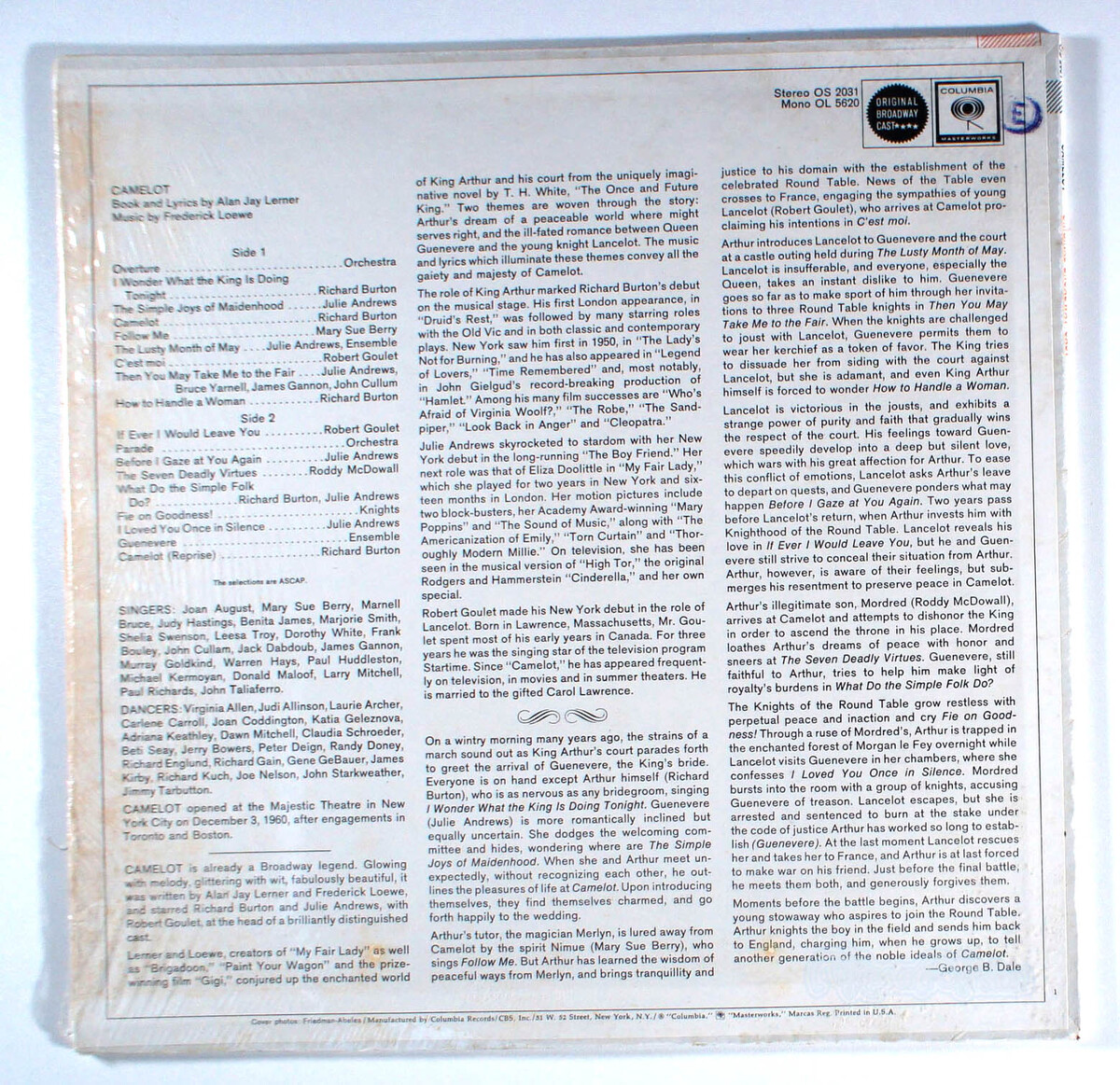 Camelot (1960) Vinyl LP Broadway Cast Soundtrack, Julie Andrews Richard Burton