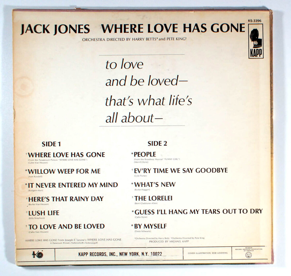 Jack Jones - Where Love has Gone (1964) Vinyl LP People, Lush Life