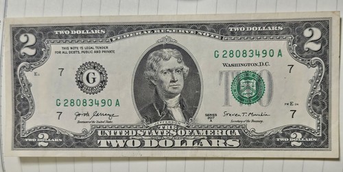 MOUNT RUSHMORE NATIONAL MEMORIAL MOUMENT Legal Tender U.S. $2 TWO-DOLLAR Bill