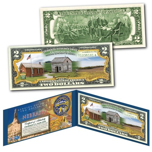 This MOUNT RUSHMORE NATIONAL MEMORIAL uncirculated Two-Dollar Bill is Genuine Legal Tender of the United States, which has been enhanced with beautiful images of the MOUNT RUSHMORE. The colorized images are accomplished through a revolutionary new authentic genuine colorization process pioneered by The Merrick Mint, creating a collectible work of art. Only genuine Legal Tender $2 United States Bills are used for this unique colorization process. Each $2 Bill is in FRESH, CRISP, UNCIRCULATED condition, and was directly removed from untouched wrapped Federal Reserve sealed packs. Former U.S. President Thomas Jefferson is featured on the obverse of the note, along with the special colorization overlay. The Signing of the Declaration of Independence by John Trumbull is featured on the reverse. It is the only U.S. Currency note that features two Presidents, John Adams and Thomas Jefferson, and it is one of the most rarely seen BILLS in circulation and actual use.