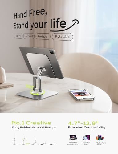 Compatible with devices ranging from 4.7 to 12.9 inches, including popular models like the iPad Pro, Samsung Galaxy Tabs, and more, this stand is perfect for video conferences, online education, or simply enjoying your favorite content hands-free. Plus, its foldable design makes it incredibly portable, easily fitting into your bag or pocket for on-the-go convenience.