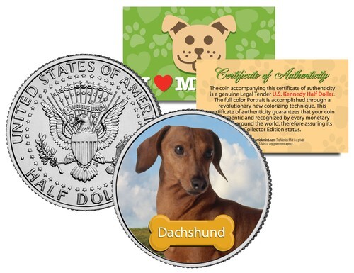 This DOG SERIES coin is a treasured collectible, combining the popularity of dogs with coin collecting. Here is your chance to own a beautifully colorized JFK Kennedy Half Dollar U.S. Coin. This high-quality genuine Legal Tender U.S. coin has been colorized using a unique painstaking multicolor authentic process. Colorizing coins involves the unique application of special inks directly to the surface of a coin that achieves a level of detail, color saturation, and durability that is #1 in the coin industry. The result is an everlasting colorized coin collectible of ultra-high quality. Each coin comes in a premium coin capsule with a Certificate of Authenticity.