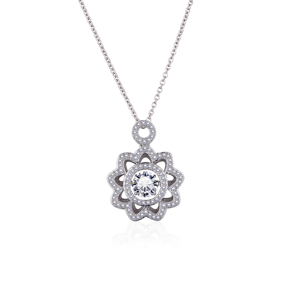 925 Sterling Silver Platinum Plated 1.75 CT White Cubic Zirconia flower Pendant