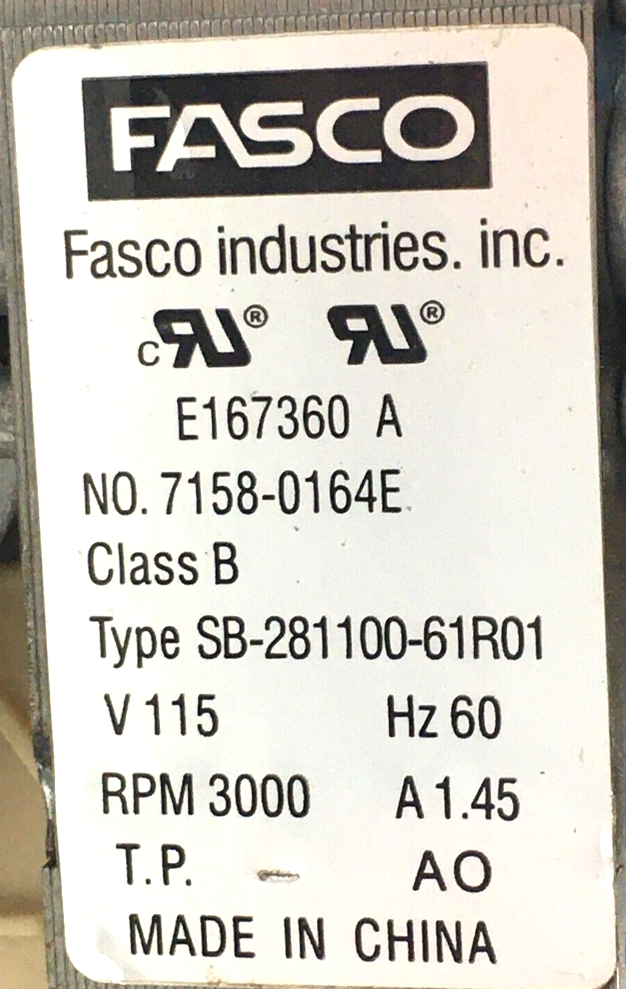 This is FASCO 70580260 Draft Inducer Blower Motor D342077P02 7158-0164E 115V 3000 RPM used part.