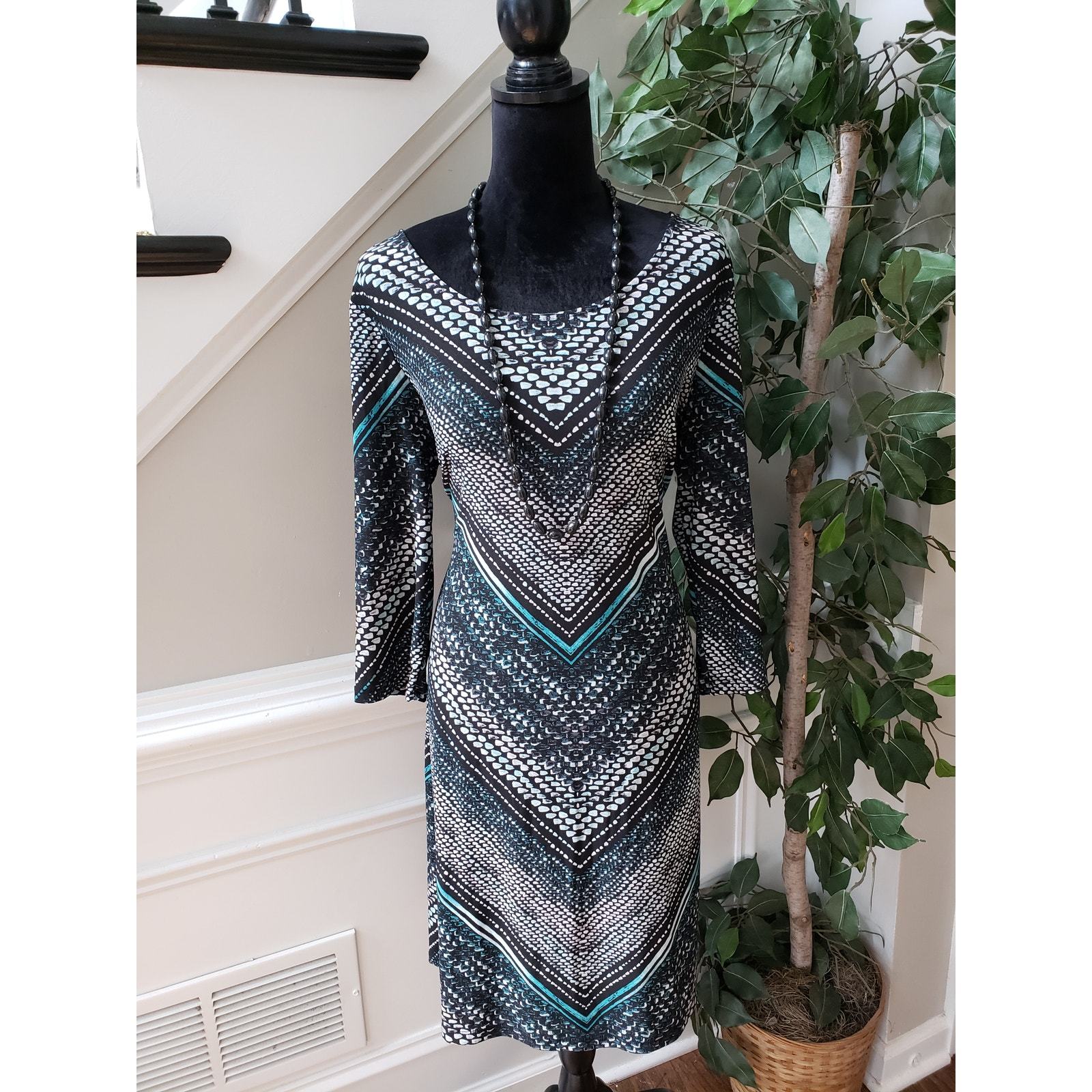 Dana Buchman Sheath Dress Women's Small Black & White Stretch Long Sleeve
