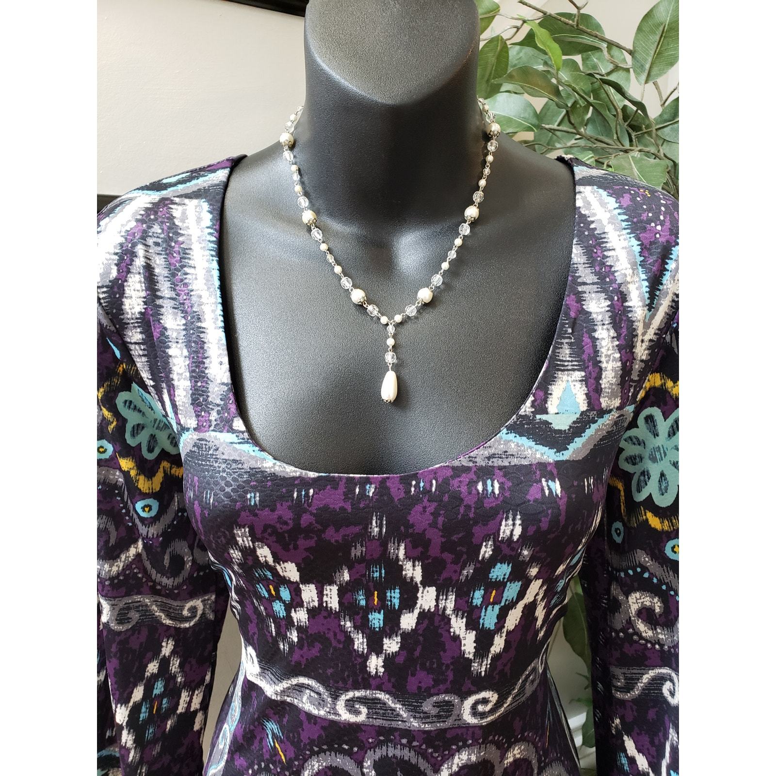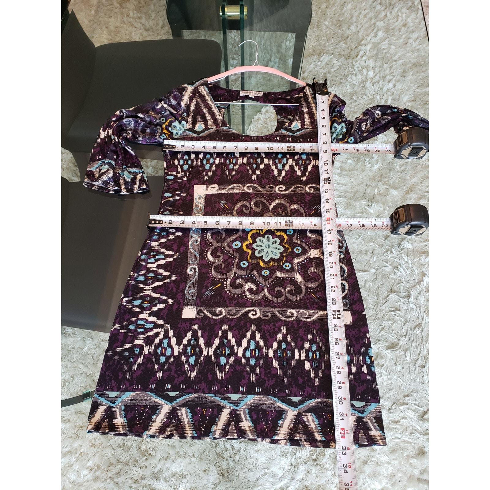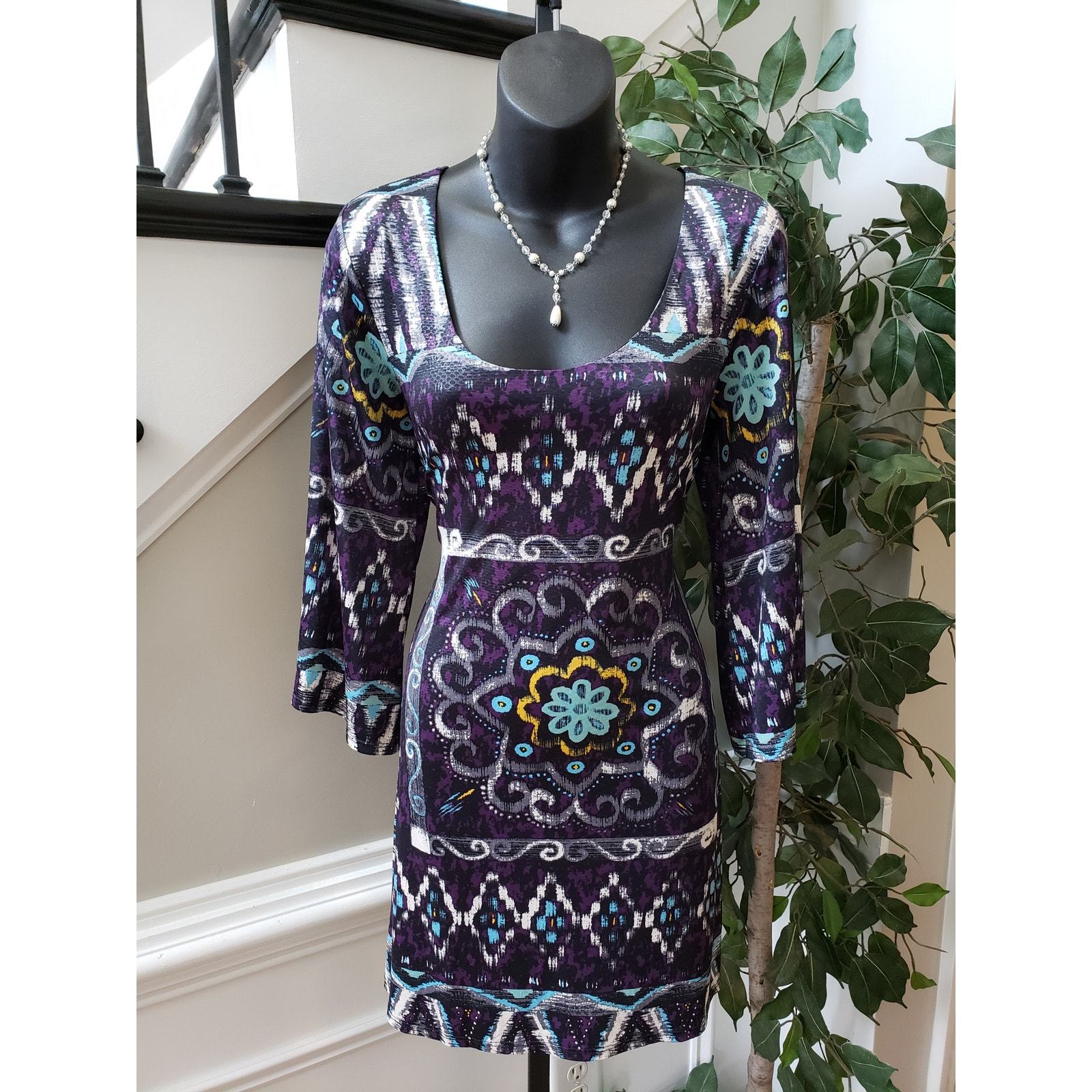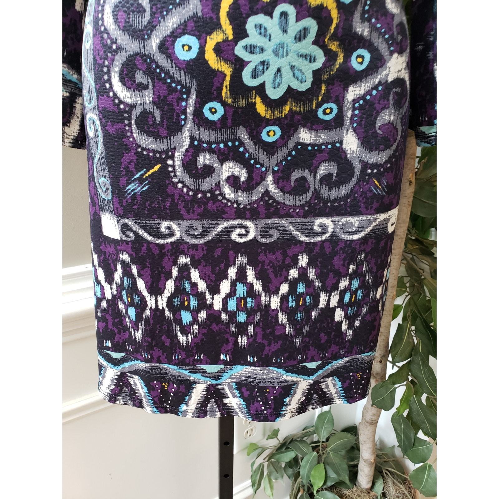 Mesmerize Shift Dress Womens Size Small Purple & Black Scoop Neck Keyhole Back