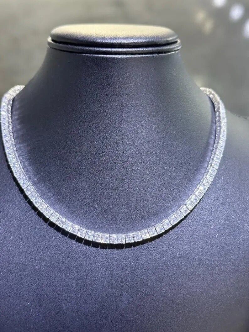 39ctw Lab Created Princess Diamond Women's Tennis Necklace 14K White Gold Plated
