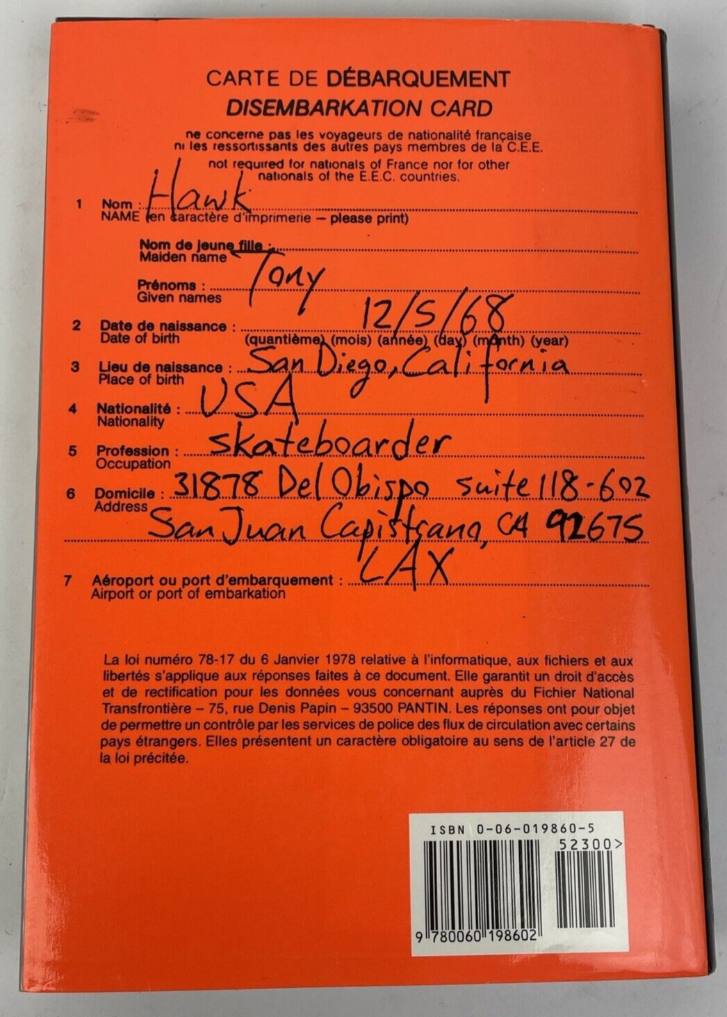 Hawk Occupation : Skateboarder 2000 HC Hard Cover Book Signed .....to Jennifer