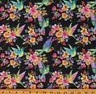 Cotton Batik Hand Painted Hummingbirds Birds Plants Flowers Floral Sapphire Cotton Fabric Print by the Yard (W2529-230-SAPPHIRE) by Hoffman California Fabrics