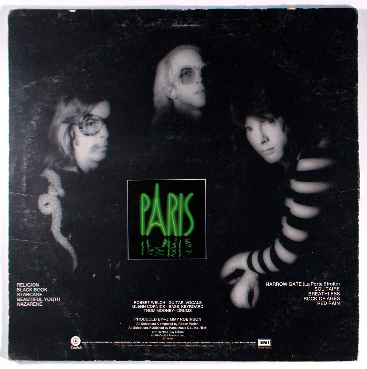 Paris, an eponymous album, reached 103 on the Billboard pop album chart. Paris comprised guitarist Bob Welch, formerly with Fleetwood Mac, bassist Glenn Cornick, formerly of Jethro Tull and drummer Thom Mooney, formerly of Nazz. It was the only album recorded by this line up, as Mooney left shortly afterwards. The songs were all written by Bob Welch and are a major contrast to the songs he wrote with Fleetwood Mac. The logo of the band was Cornick's creation.