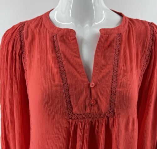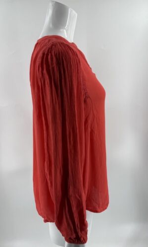 Gap Womens Top Size Small Red Crepe Split Neck Long Sleeve Boho Blouse
