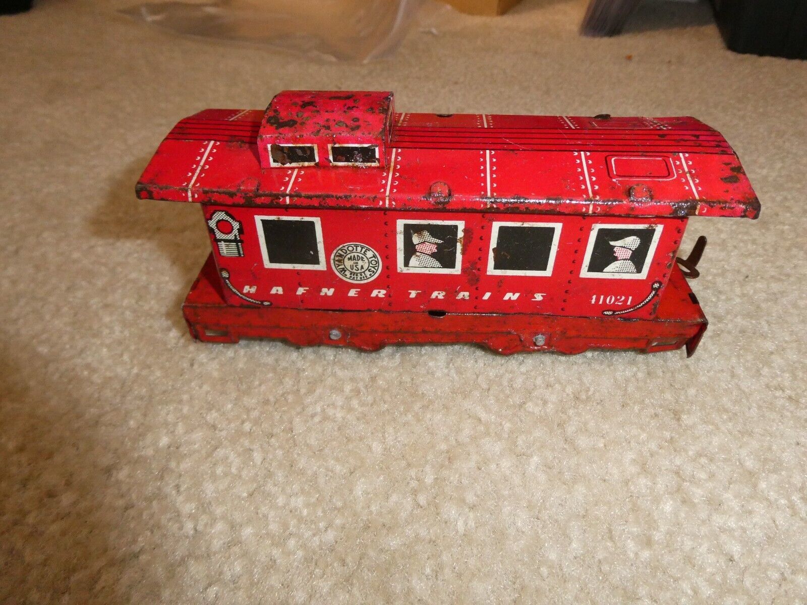 You are bidding on a nice looking, vintage, O scale, Hafner, tin litho 41021 caboose car in the pictures. 5 1/2 inches long. Good shape with lots of scrapes, scratches, surface rust, general wear, maybe could use a fine cleaning as shown. Zoom in for details.