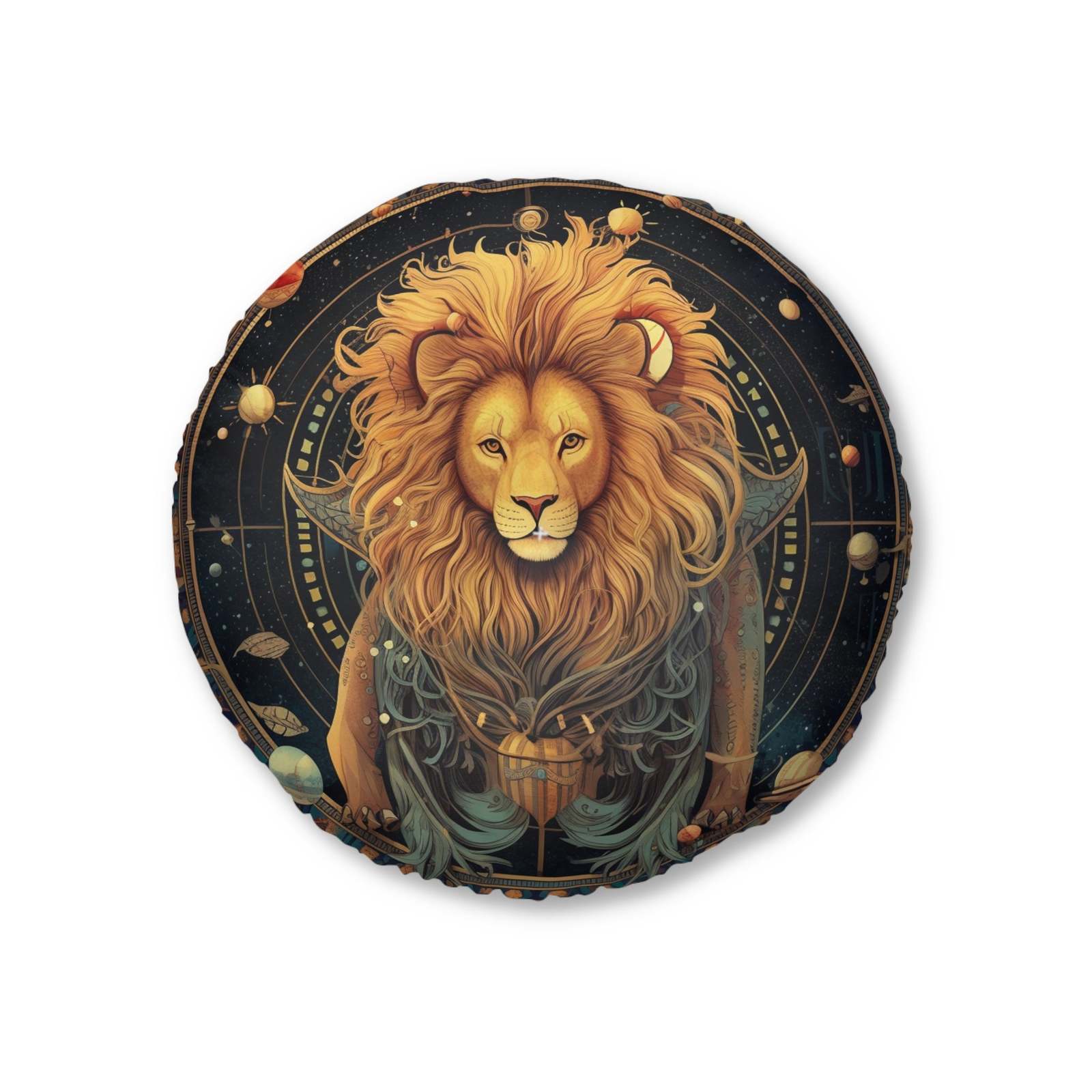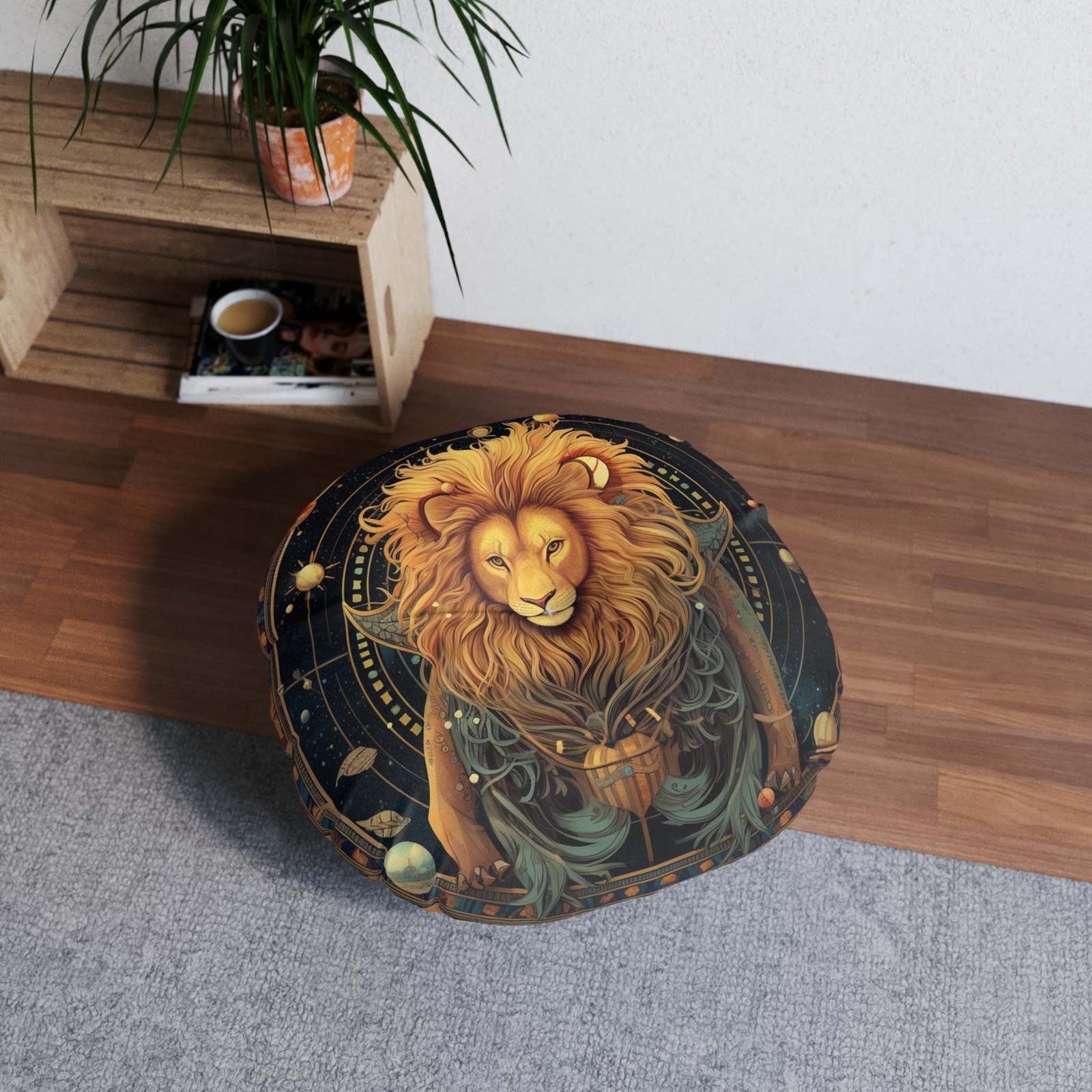 Astrological Leo Sign - Vibrant Cosmic Zodiac Astrology - Tufted Floor Pillow, R