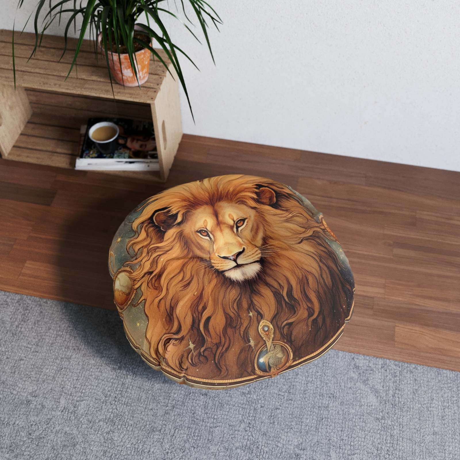 Astrological Leo Sign Vibrant Celestial Cosmic Zodiac - Tufted Floor Pillow, Rou