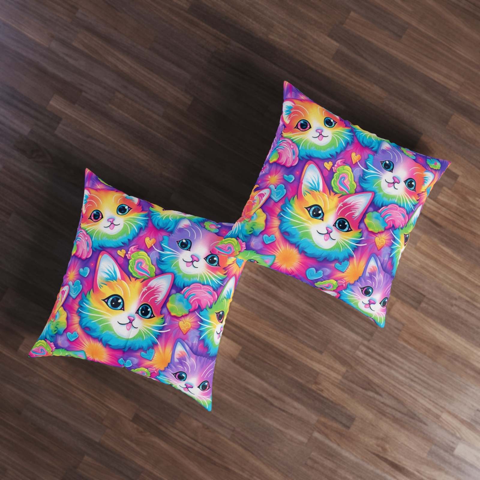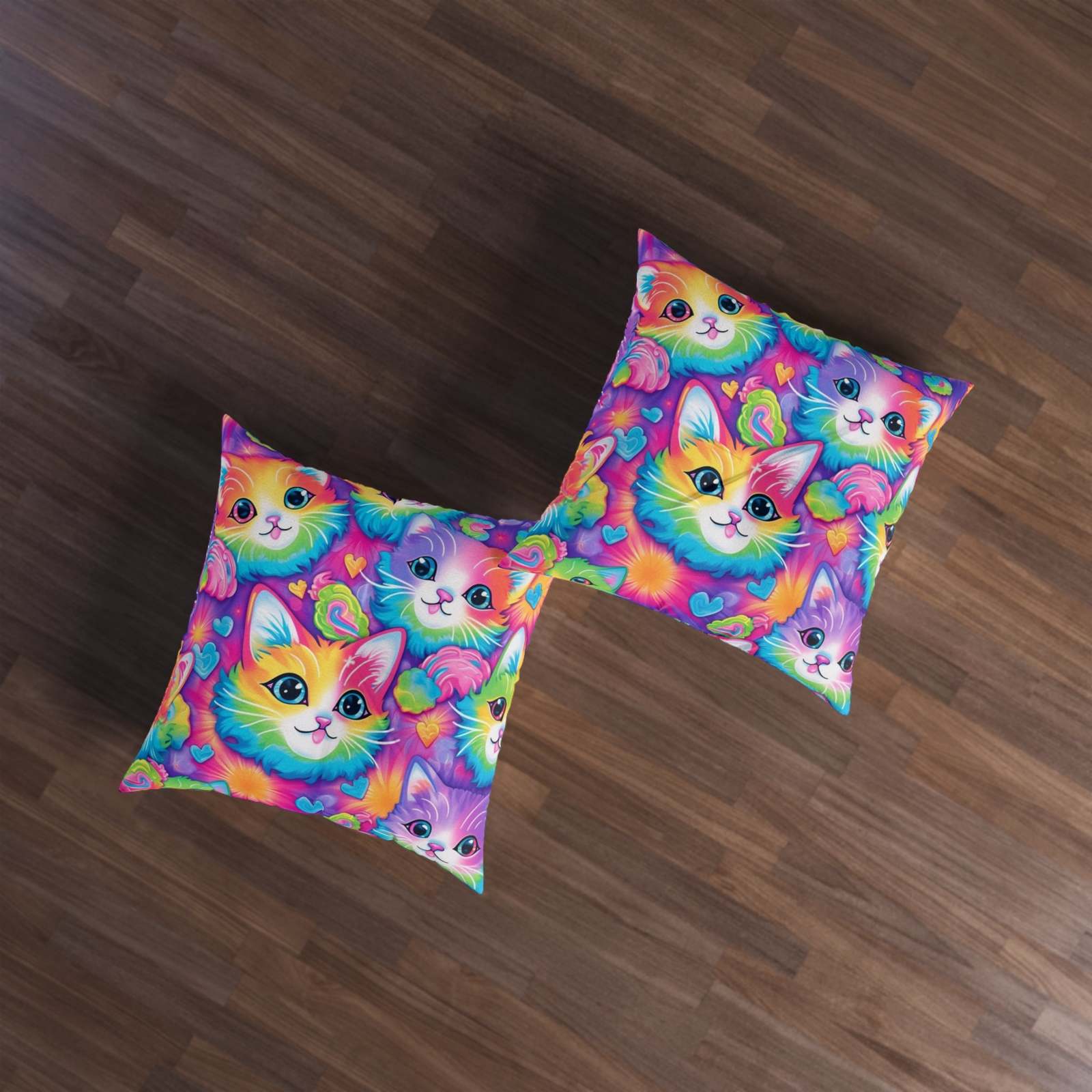 Happy Kitten & Cat Design - Vivid, Colorful & Eye-Catching - Tufted Floor Pillow