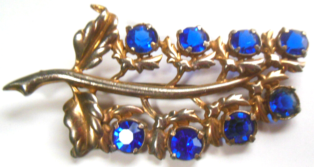 Vintage Large Faceted Prong-set Blue Rhinestone Flower Brooch 3.3/4" x 1.7/8"