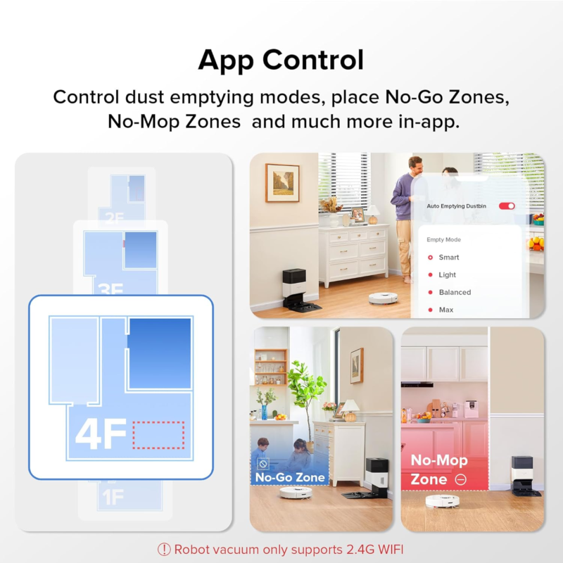 Robotic Vacuum with App-Controlled Mopping, 4200Pa Suction, No-Mop&No-Go Zones,