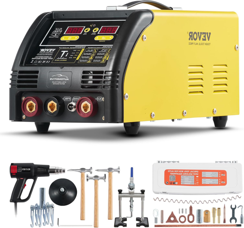 Comprehensive Dent Repair Solution: All-in-one solution for automotive dent repair in any capacity, VEVOR Dual Pro stud welder is designed to work on both steel and aluminum automotive panels, and equipped with tools and accessories to facilitate a seamless, thorough repair that exudes professional quality.