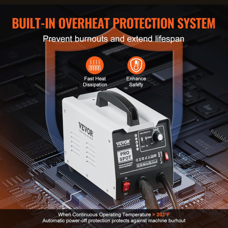 Our spot welding machine is equipped with an intelligent overheat protection system, which activates when the temperature exceeds 203?, preventing short circuits and machine damage. Tthe side vents also ensure rapid heat dissipation, making welding hassle-free and secure.