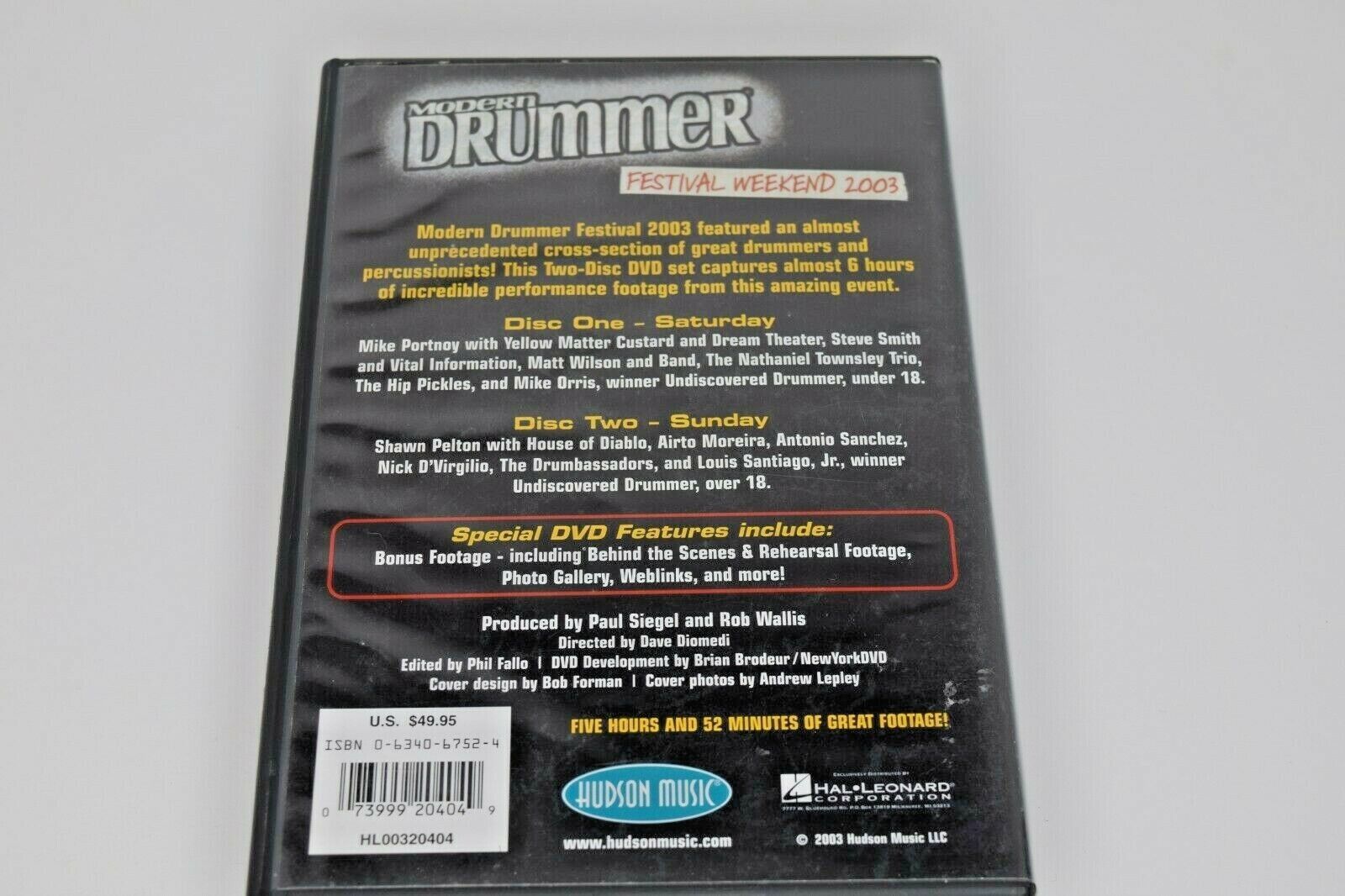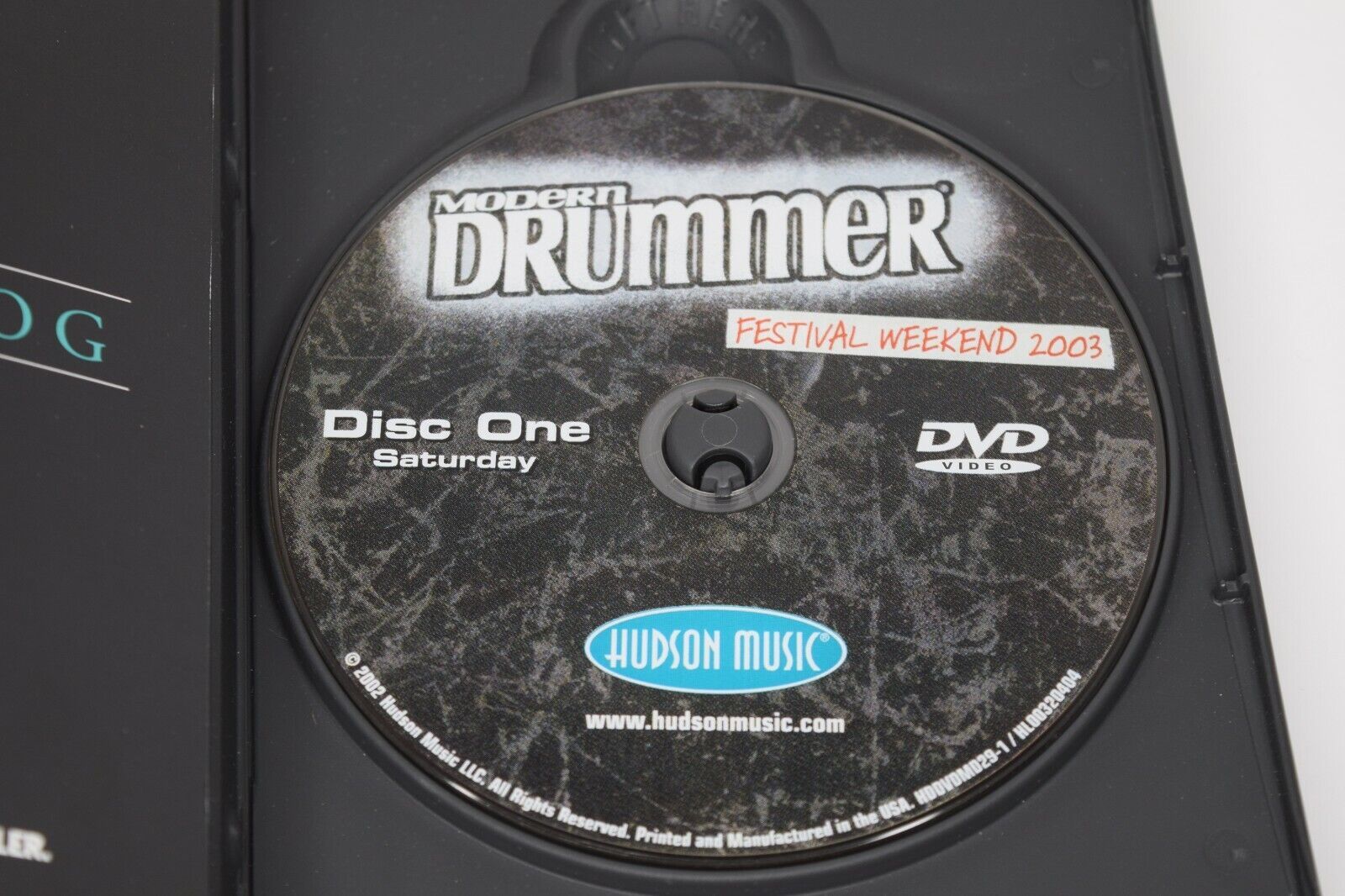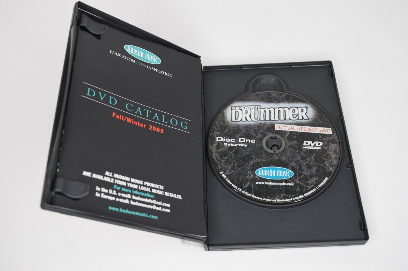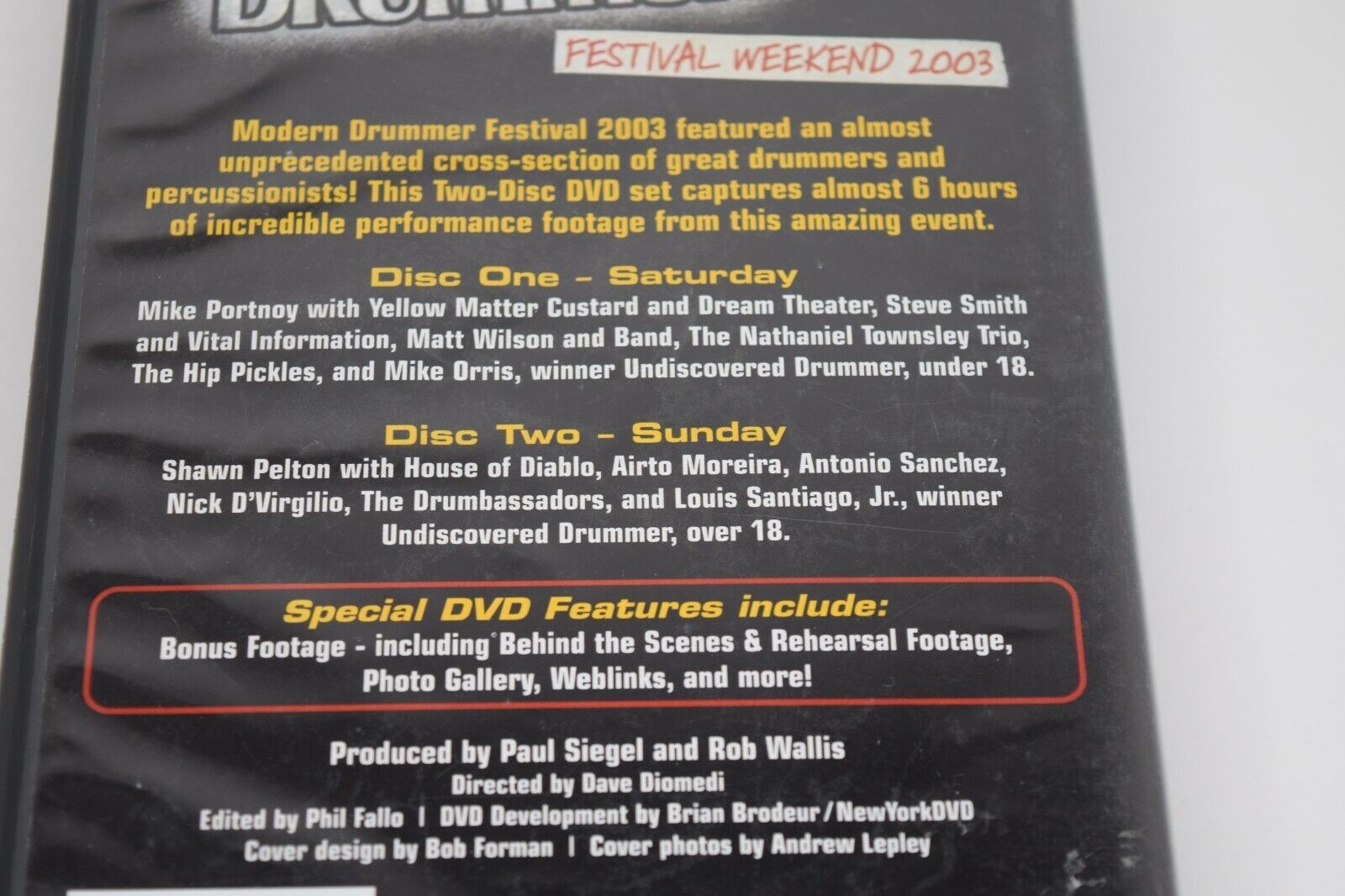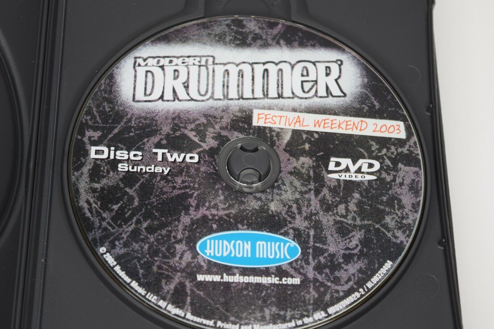 Modern Drummer Festival Weekend 2003 Highlights (DVD, 2003, 2-Disc Set). Used in Very Good Condition. Discs play great with minor wear. Insert is included. Case is good with some normal shelf wear. See all photos for details and condition. Will ship USPS Media Mail.