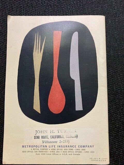 Vintage 1953 Metropolitan Life Insurance Company Cook Book Cookbook
