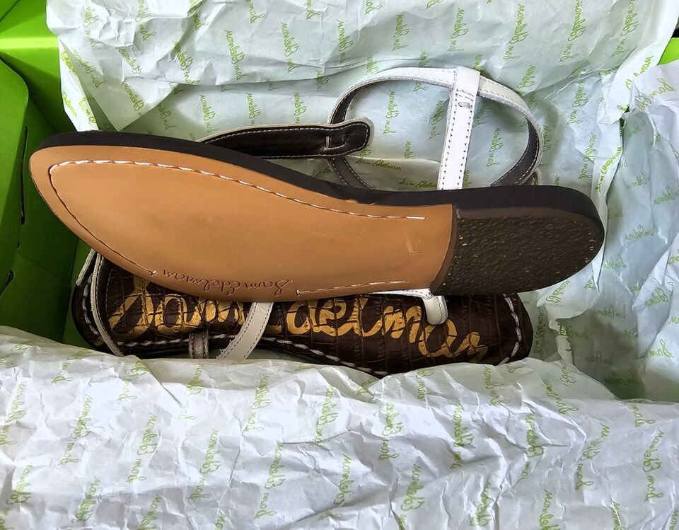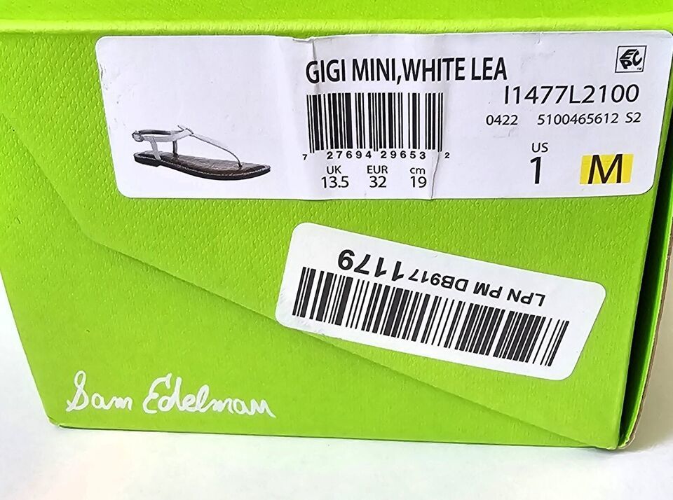 Sam Edelman Unisex Gigi Mini Sandals White Lea Thong Style Leather Casual Size 1
