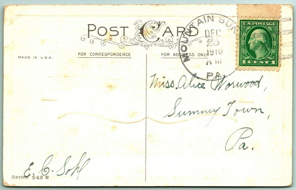 Normal wear associated with an old postcard it might have creases, a corner bump, ink on the front etc.