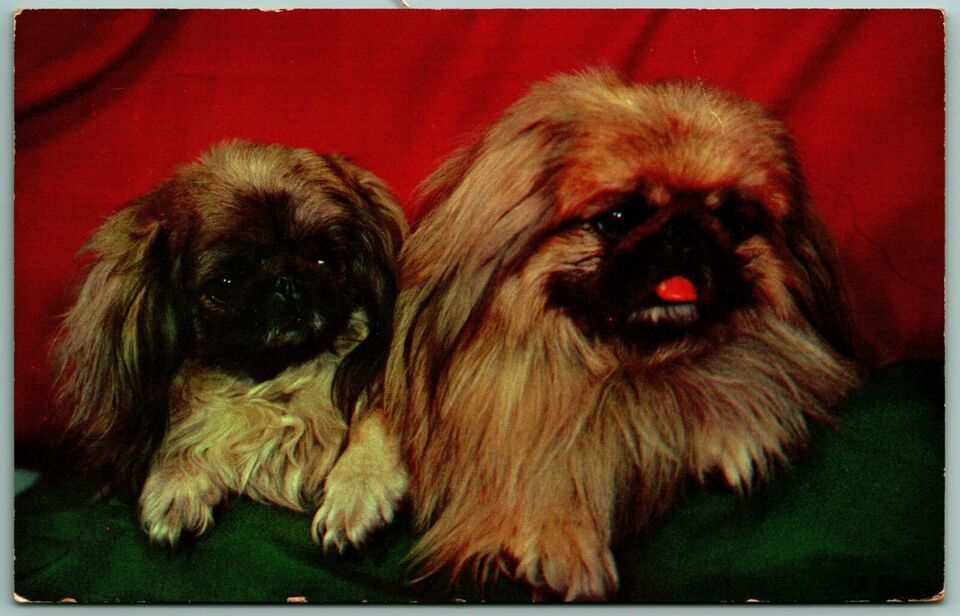 Pekingese Dog and Puppy 1958 Chrome Postcard H9
