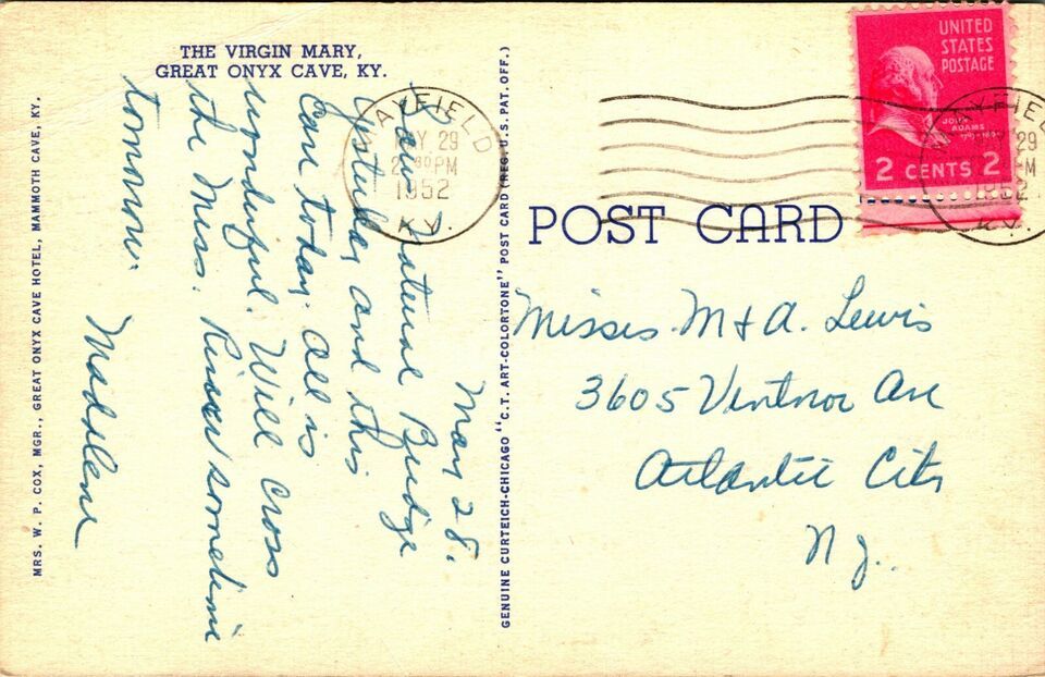 The Virgin Mary Great Onyx Cave Kentucky KY Linen Postcard A3