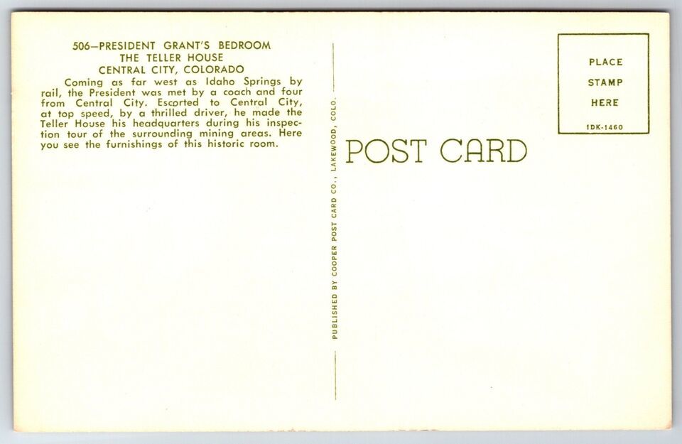 Teller House Grant's Bedroom Central City CO UNP Unused Chrome Postcard K2