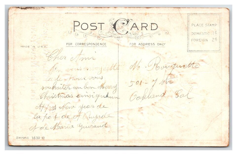 Happy New Year Bell Robin Icicles Embossed UNP DB Postcard U17