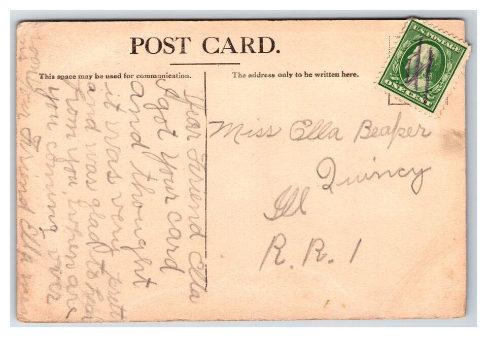Normal wear associated with an old postcard it might have creases, a corner bump, ink on the front etc.