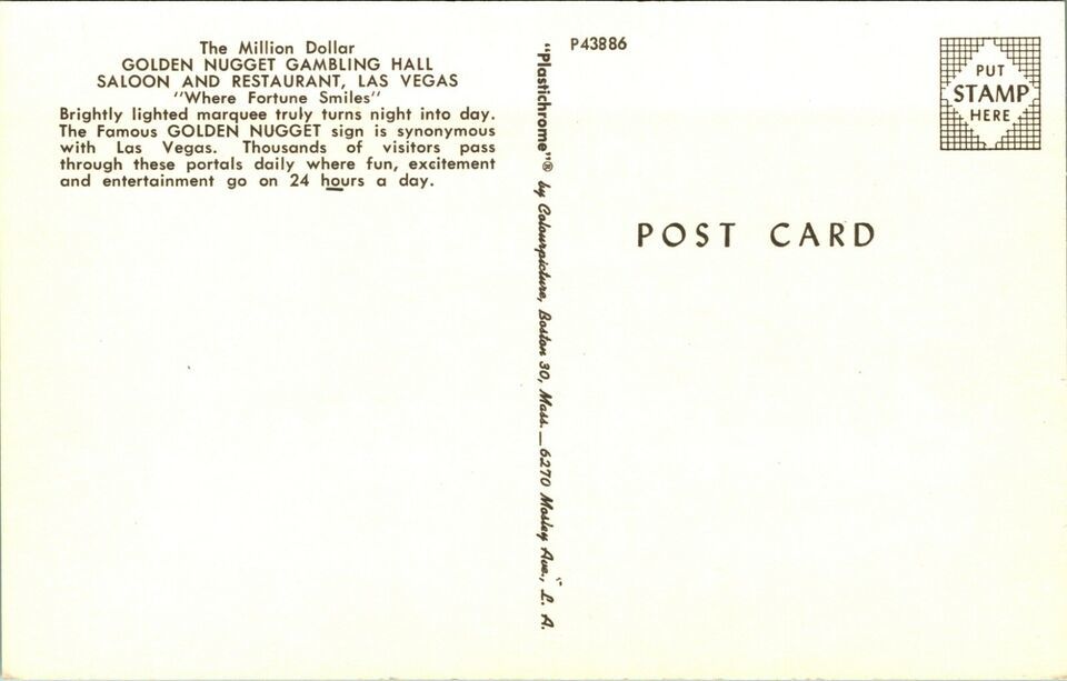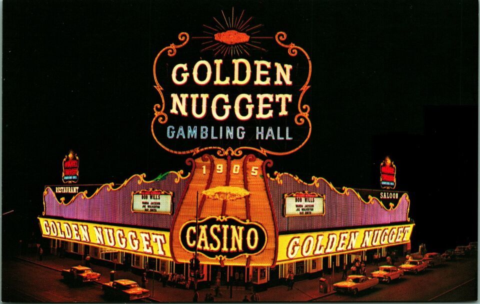 Golden Nugget Gambling Hall Night View Las Vegas Nevada NV Chrome Postcard B5