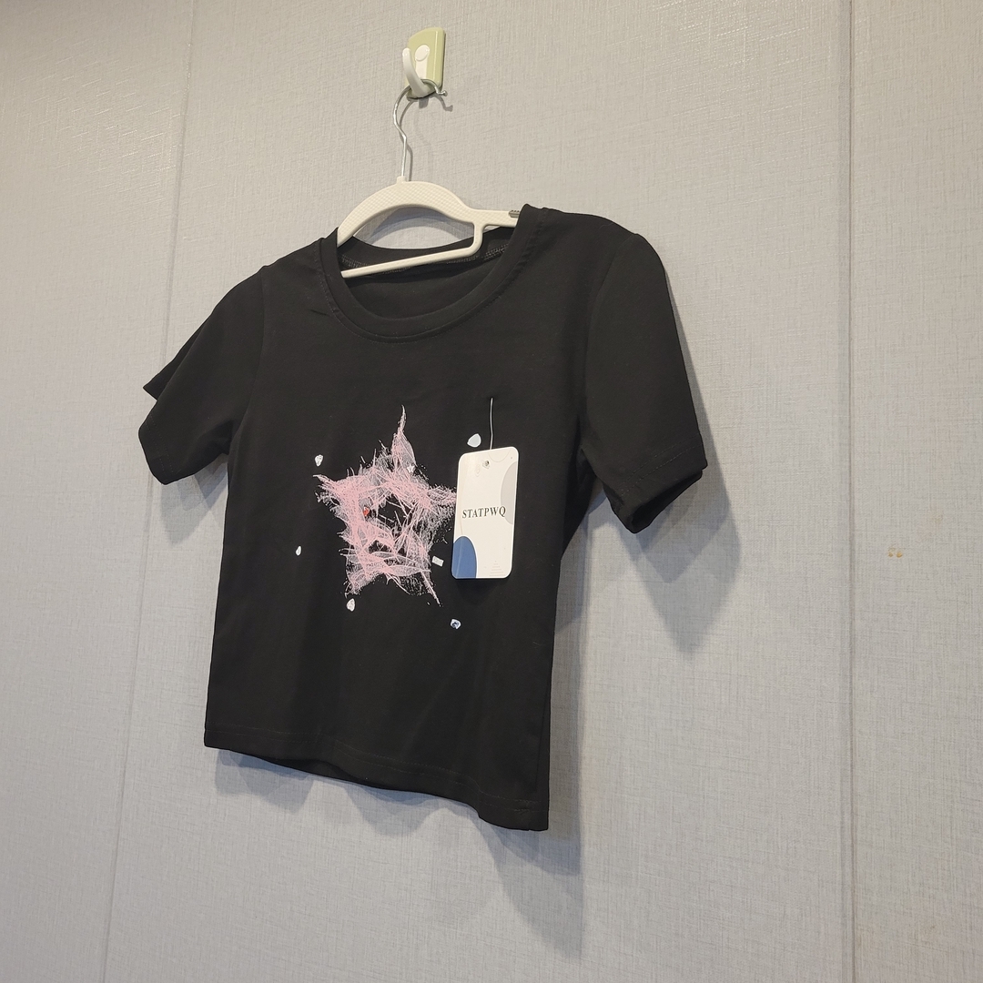 STATPWQ Tee shirts Classic women's black cropped T-shirt for everyday wear