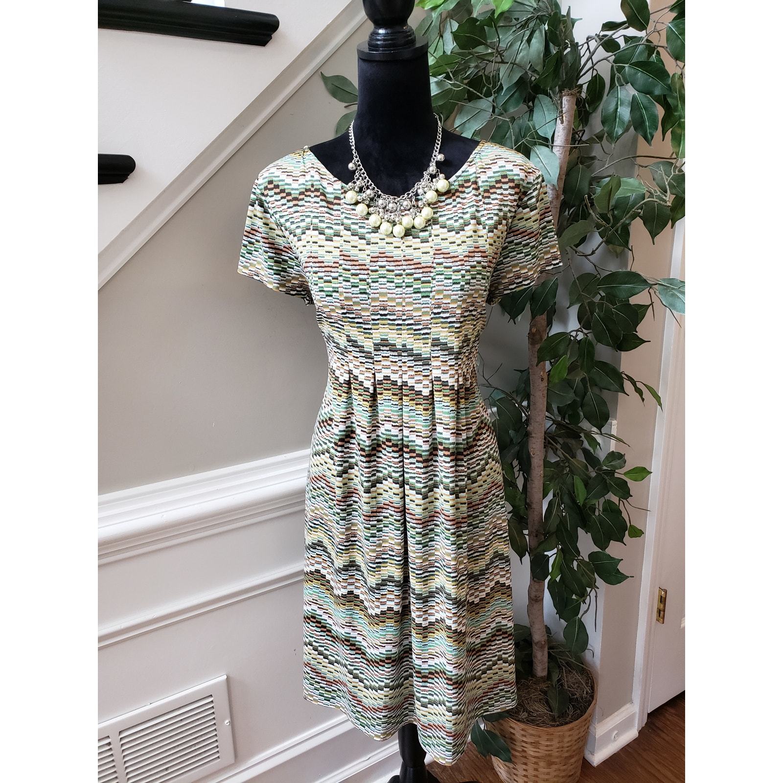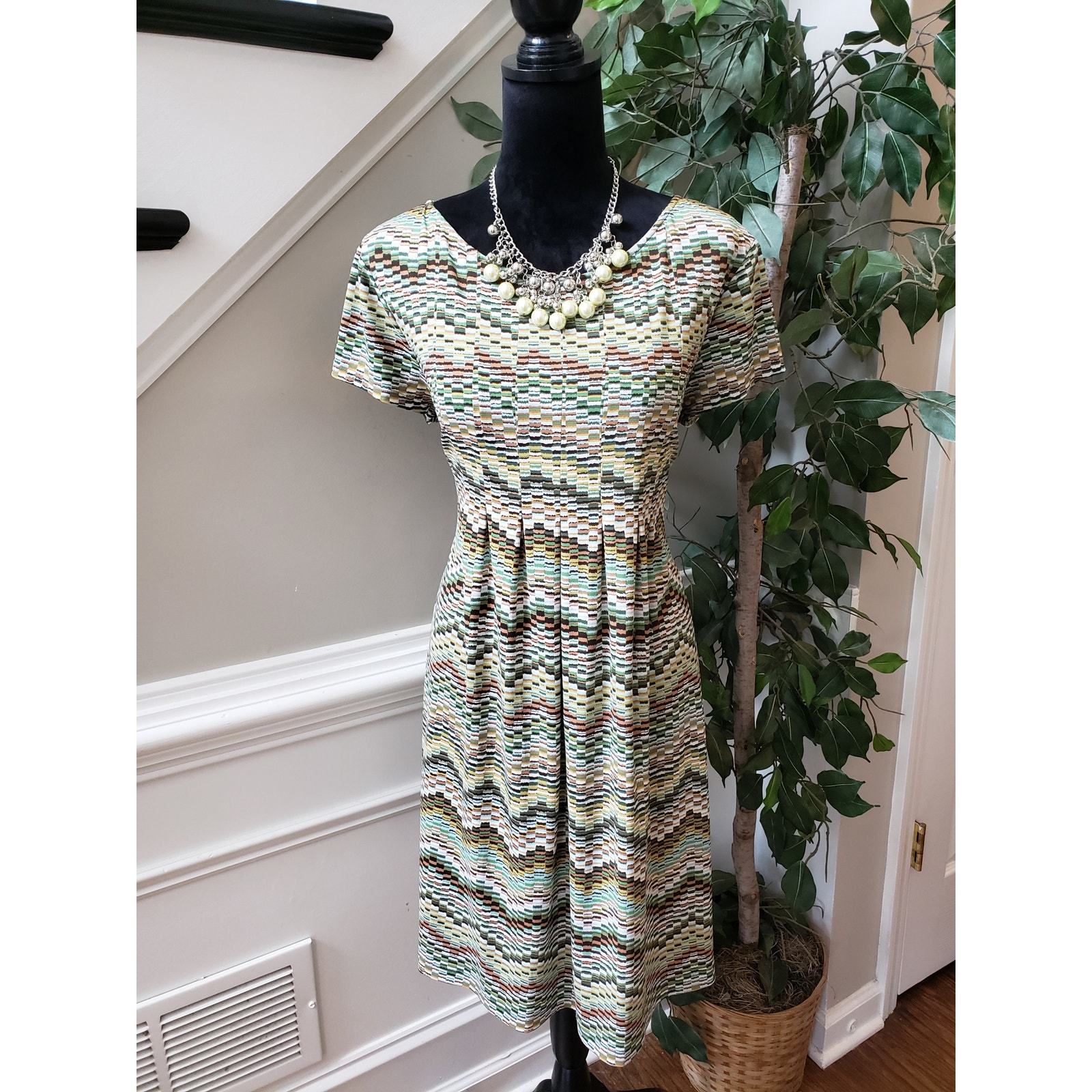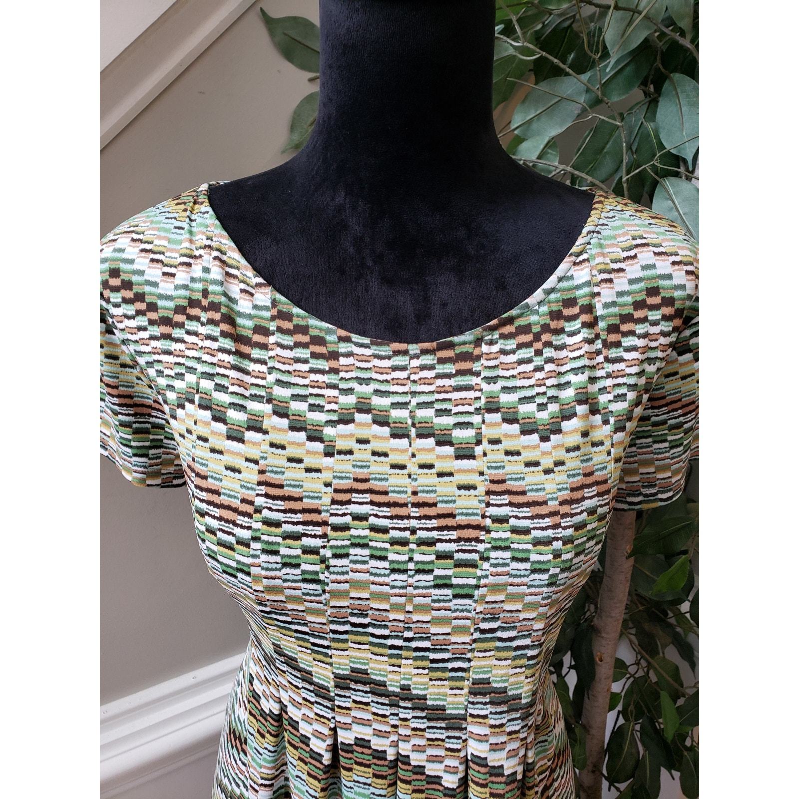 Connected Apparel Fit & Flare Dress Womens Size 12 Multi Round Neck Front Pleats