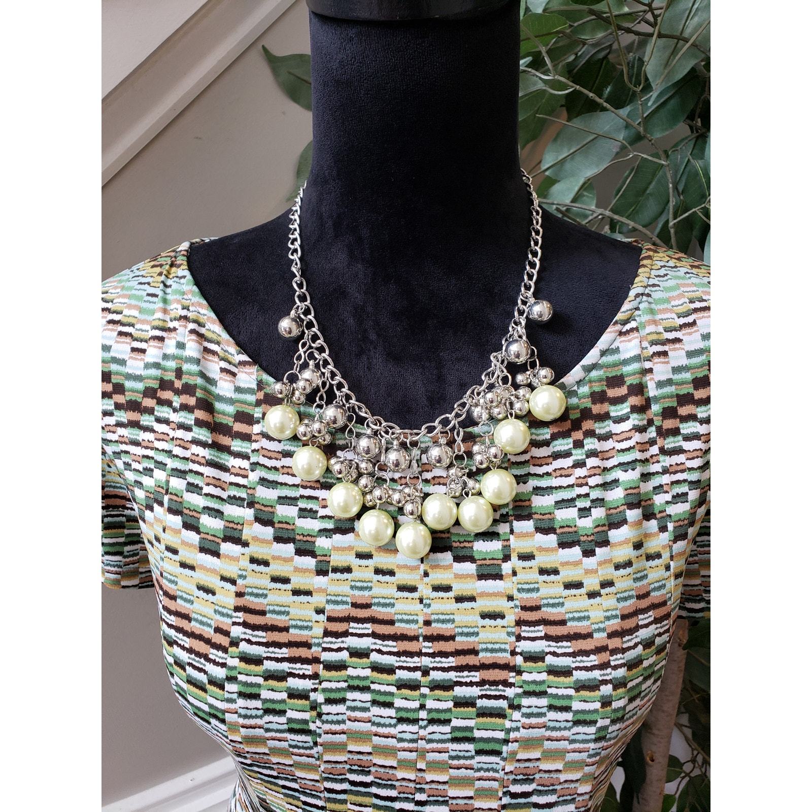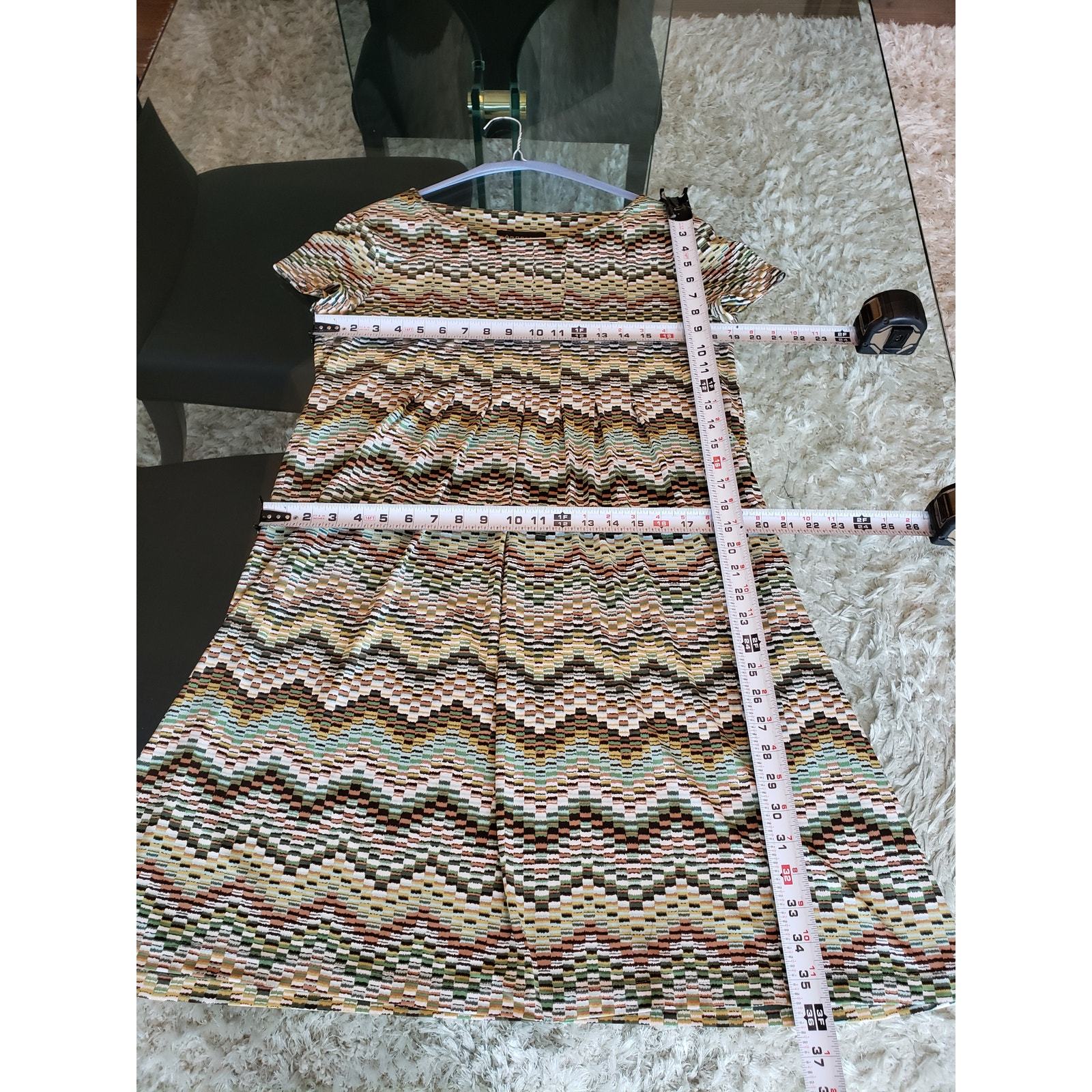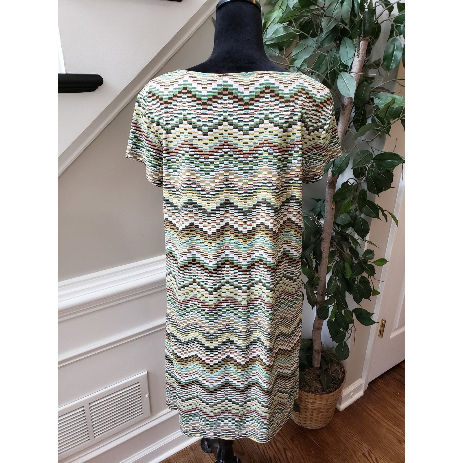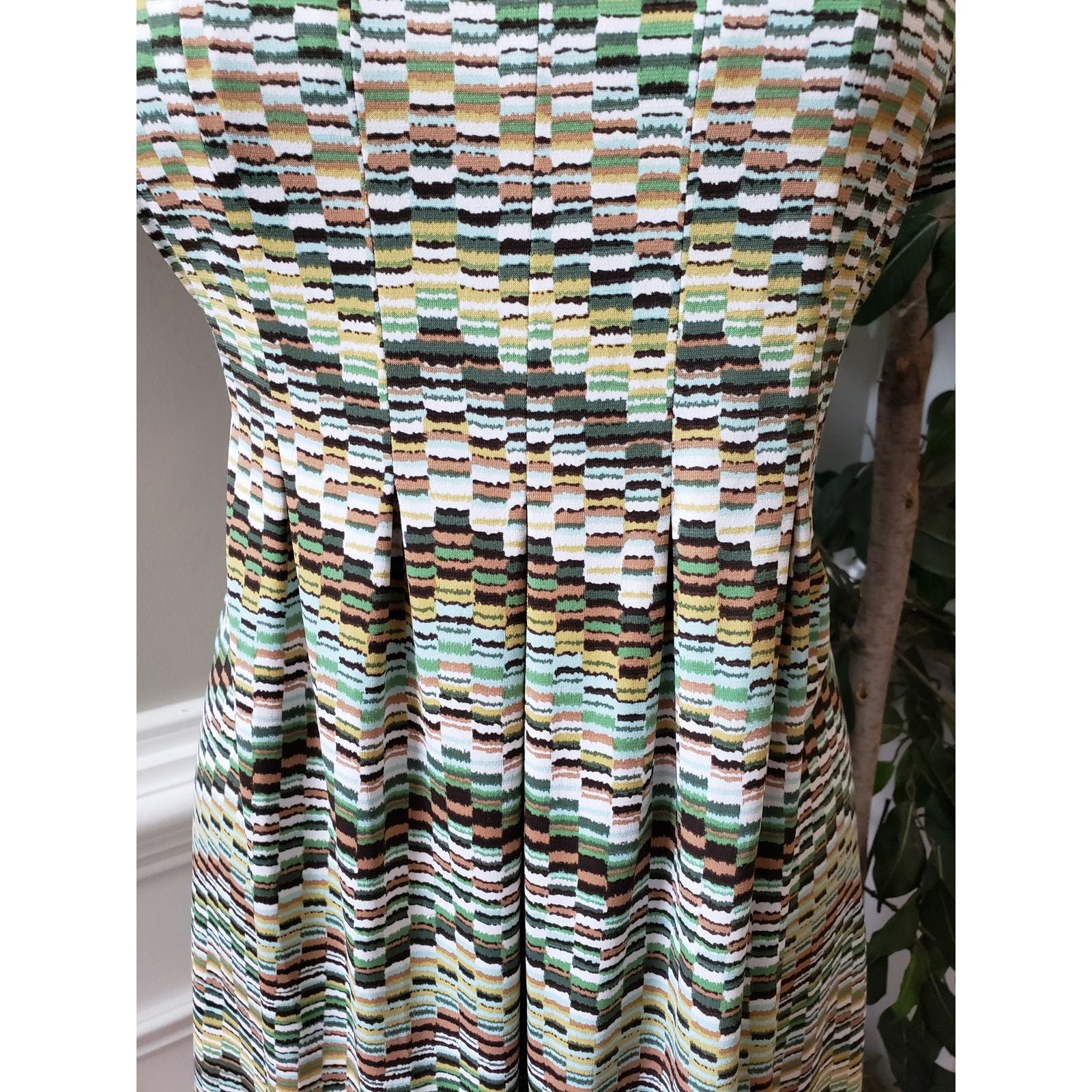 Connected Apparel Fit & Flare Dress Womens Size 12 Multi Round Neck Front Pleats