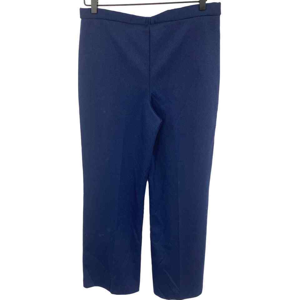 VTG 70’s Montgomery Ward Sz 14 Line Pattern Slacks Navy Blue Wide Leg Polyester