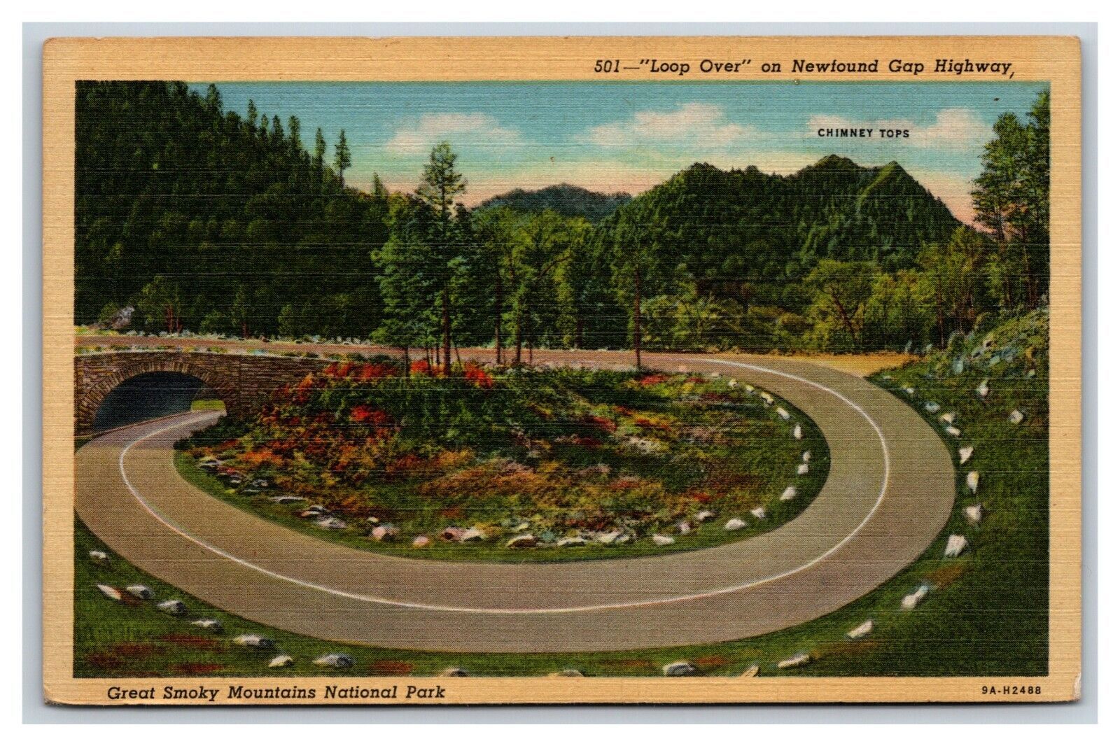 Loop Over on Newfound Gap Hwy Great Smokey Mountains UNP Linen Postcard Y9