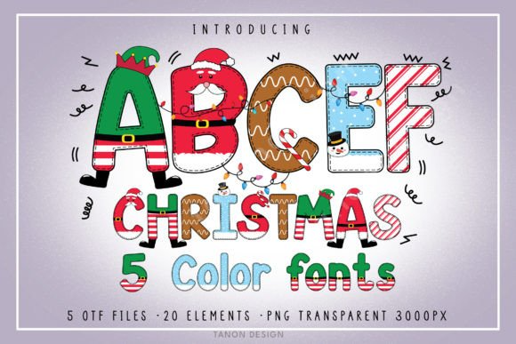 5 Christmas Bundle Color Fonts. It will look fantastic on all your Christmas-themed designs including t-shirt designs, mug designs, digital designs, crafts, cards, and any projects! You will receive a set of 5 OTF Color Fonts and all PNG transparent files 3000px and PNG elements.