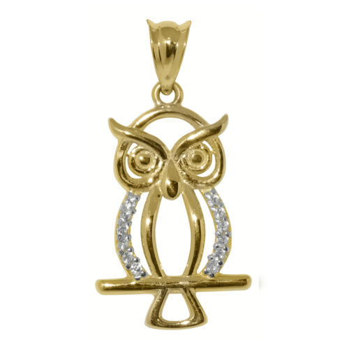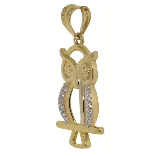 Genuine 14k Yellow Gold 0.98" Cubic Zirconia Owl Fashion Pendant For Women