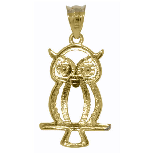 This 14-karat yellow gold owl pendant is a charming addition to any jewelry collection. Featuring a beautifully perched owl design, the pendant is adorned with round-cut cubic zirconia that adds a touch of sparkle. The open design is meticulously polished, creating a refined look. It measures approximately 19.71 mm in length and 12.28 mm in width, with a lightweight feel of about 1.1 grams.