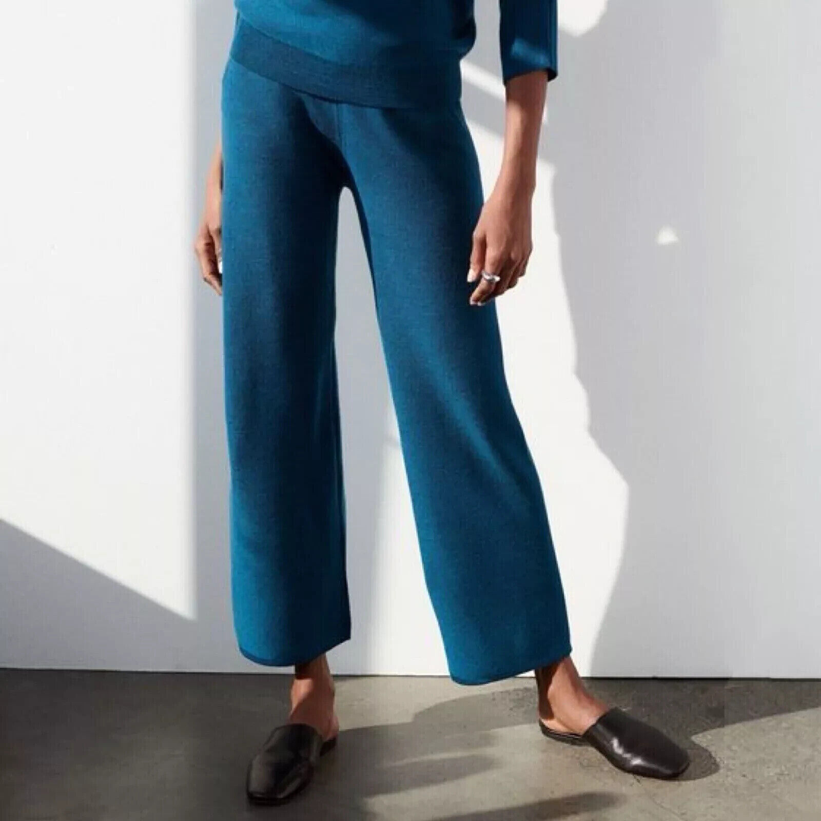 R Label Pants XS The Reset Teal Blue Wool Knit Sweater Cropped Lounge, women's