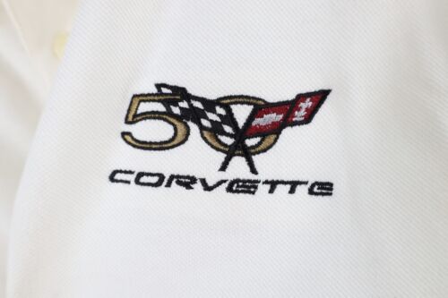 Vintage Y2K 2003 Mens Small 50th Anniversary Corvette Racing Polo Shirt White