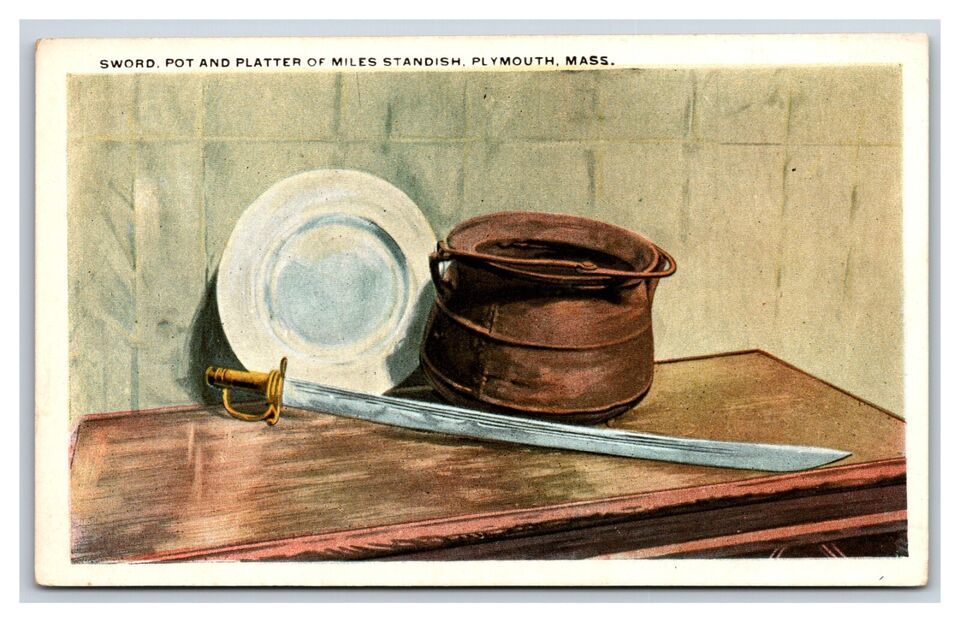 Sword Pot and Platter of Miles Standish Plymouth MA UNP WB Postcard J19