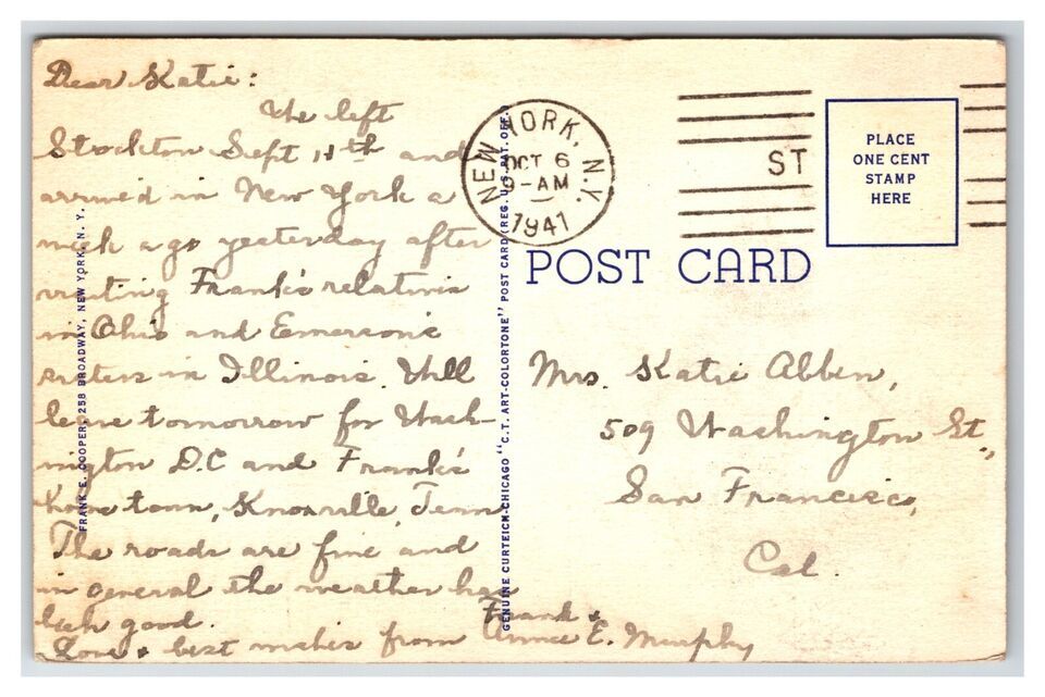Lower Manhattan From Governor's Island New York City NYC NY Linen Postcard J19