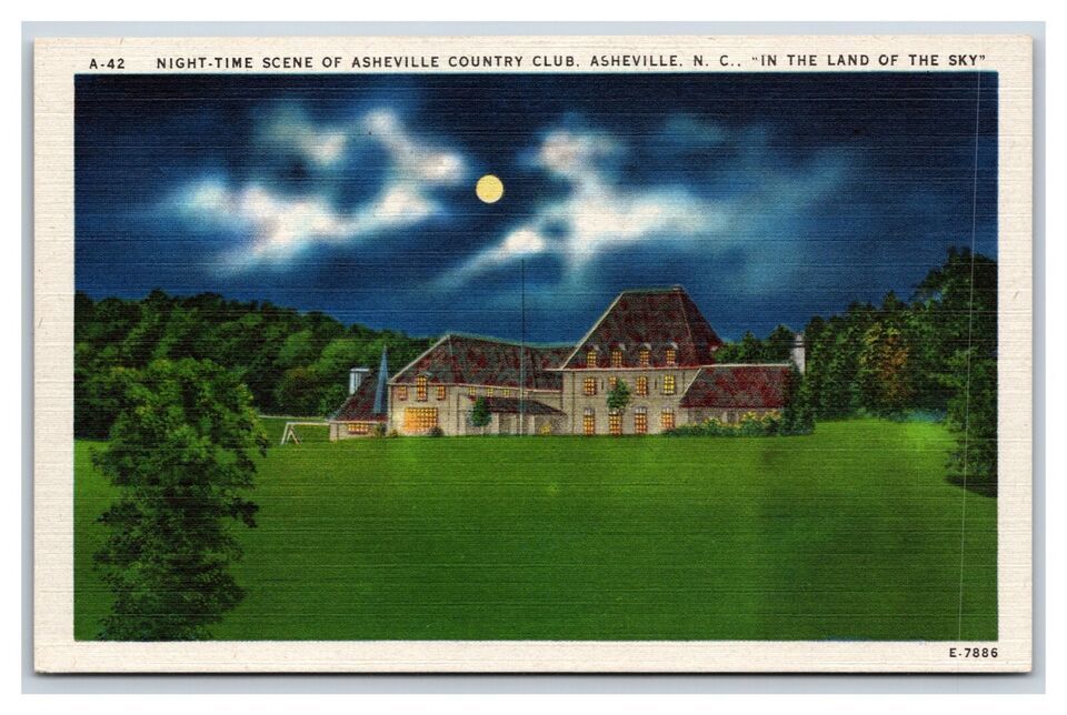 Asheville Country Club Night View Asheville NC UNP Linen Postcard R25
