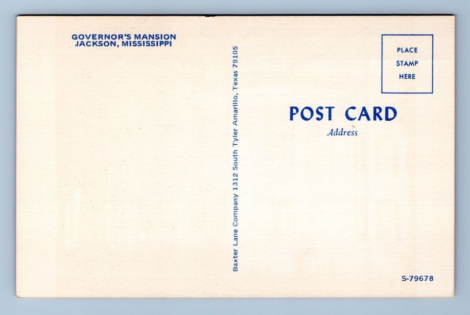 Governor's Mansion Jackson Mississippi MS UNP Unused Chrome Postcard N5